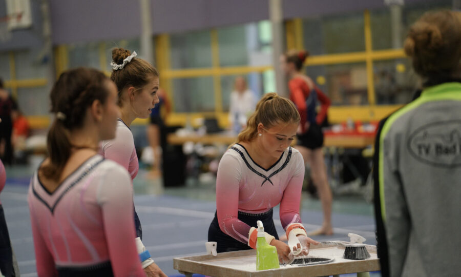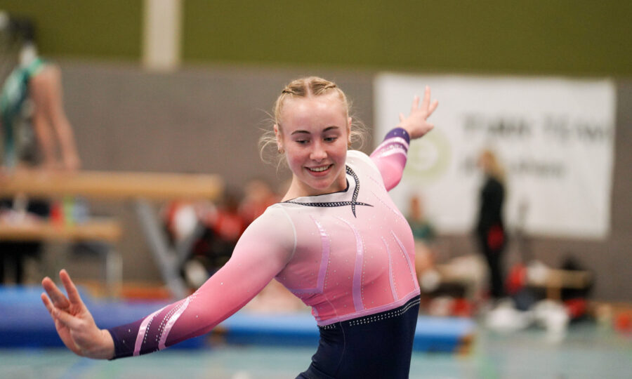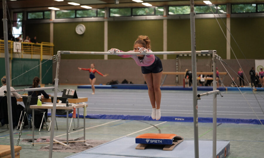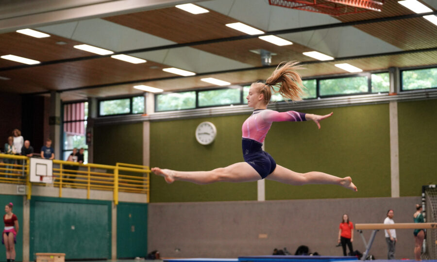 Gleich zum Auftakt setzte das Team aus Bad Iburg an ihrem traditionell stärksten Gerät ein Ausrufezeichen: Am Boden erturnten sie sich die meisten Punkte aller Mannschaften. Emily, Isabella und Aurelia konnten dazu in der Übung einen Schraubensalto zeigen, der mit 0,5 Bonuspunkten pro Übung belohnt wurde.